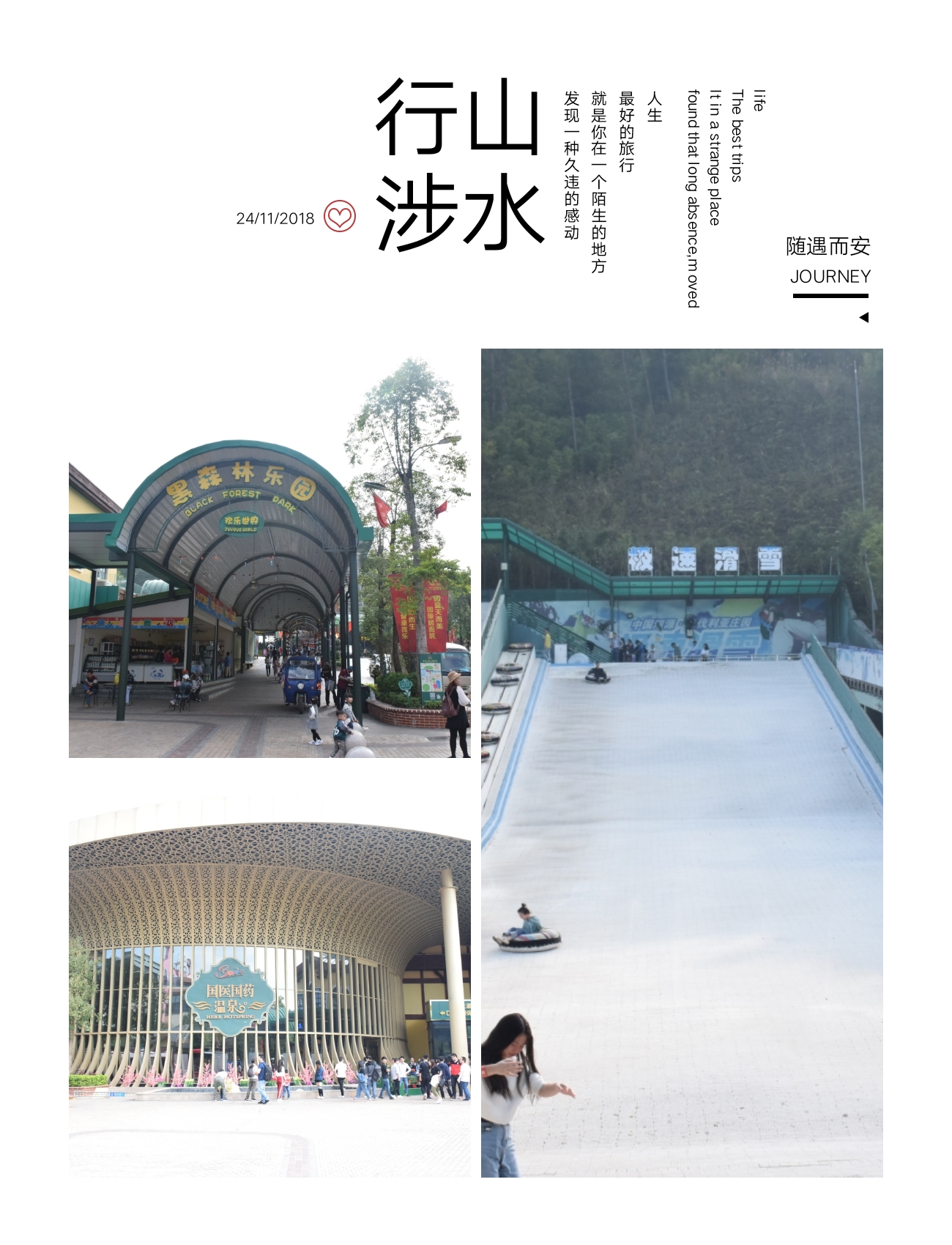 在旅游大巴上,導游朱元章給我們介紹了一些關(guān)于河源客家文化的知識,如何稱(chēng)呼當地人,還有食物的叫法,這對于許多未了解過(guò)客家文化的人來(lái)說(shuō),也是新奇有趣的。在到達河源吃完午飯后,我們開(kāi)始了當天的行程。進(jìn)入冰雪世界提前過(guò)了一把冬天的癮;在黑森林樂(lè )園玩著(zhù)小時(shí)候不曾玩過(guò)的各種游樂(lè )園項目。