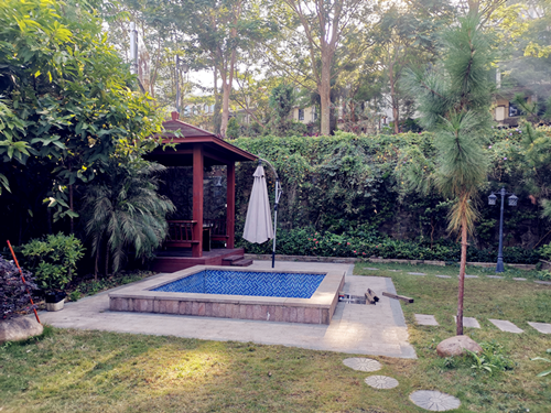 庭院也是非常惹人喜歡,除了溫泉池,還有專(zhuān)供燒烤的亭子,看起來(lái)是不是很想擁有一套。反正,小編是很想擁有一套