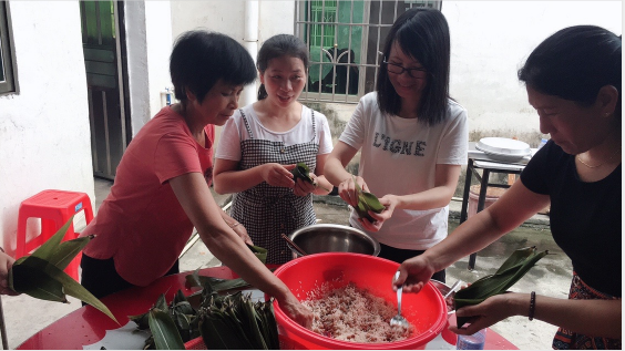 快到端午佳節,我們的女同志們湊在一起包起了粽子。
