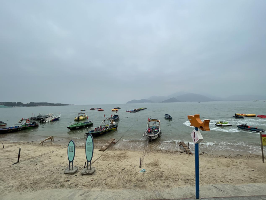 開(kāi)完會(huì )了,終于去海邊浪了,膽子大的朋友已經(jīng)坐上了海上摩托艇,膽小的我只能蹲在海邊玩玩沙子,吹著(zhù)海風(fēng),生命誠可貴,我怕掉海里!